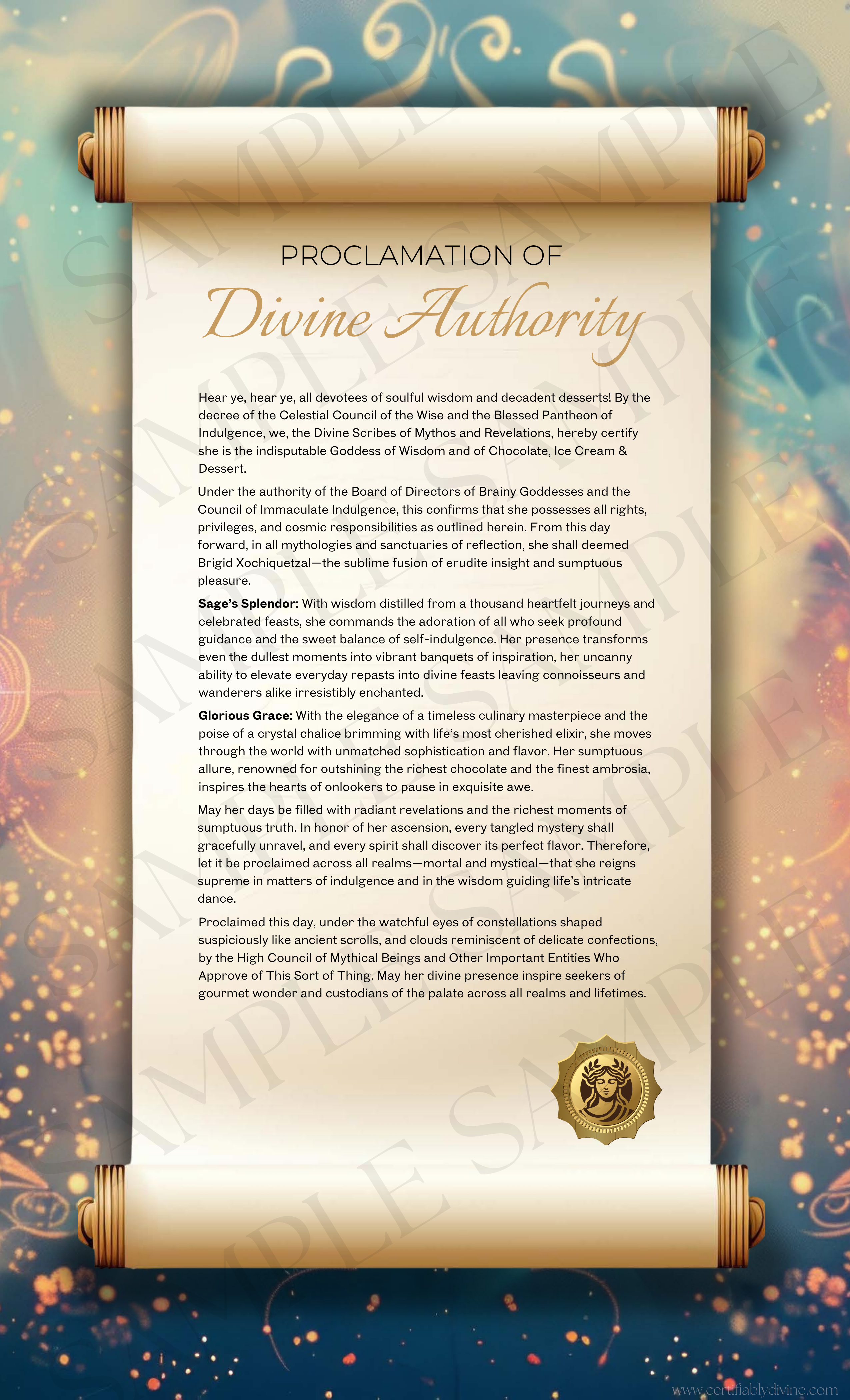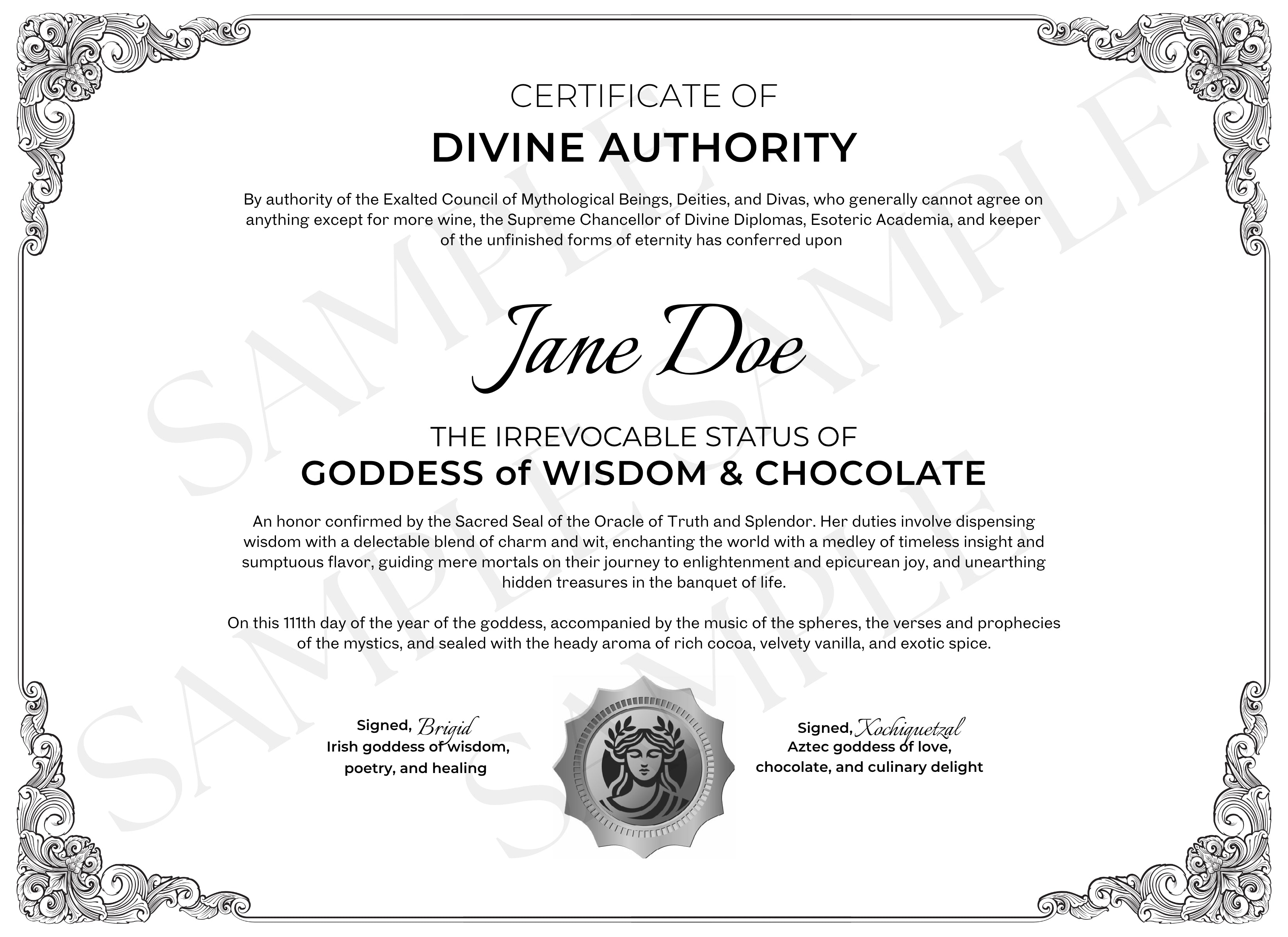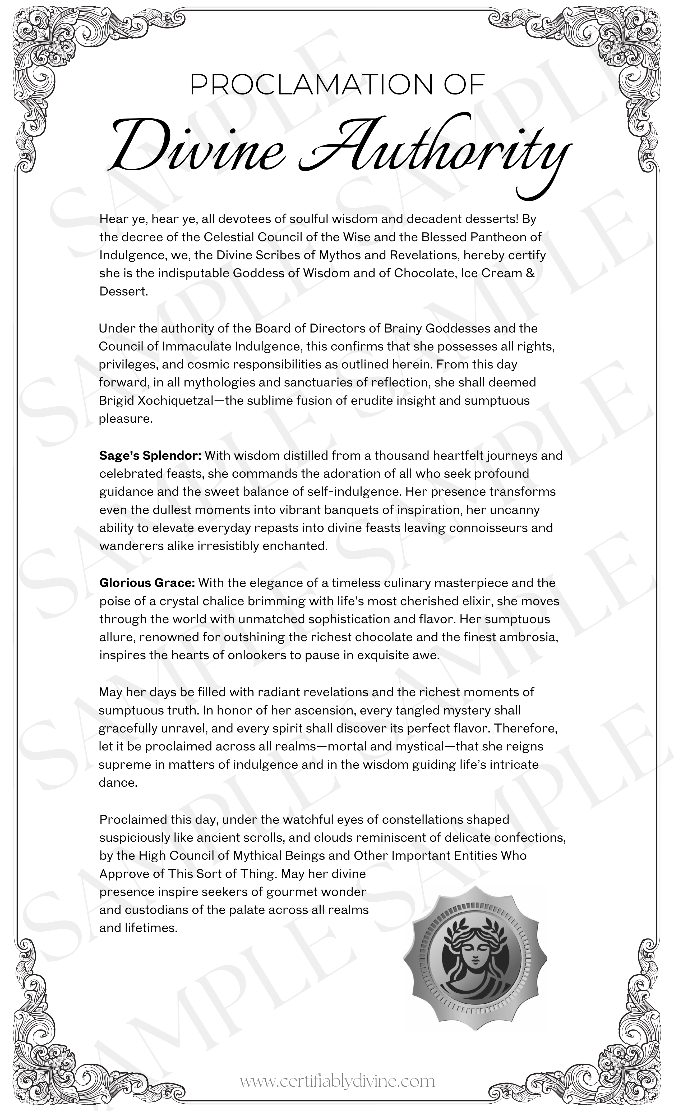 Indulge your sweet sovereignty. This printable certificate celebrates your ability to find wisdom (and serotonin) in every bite of chocolate-fueled joy.