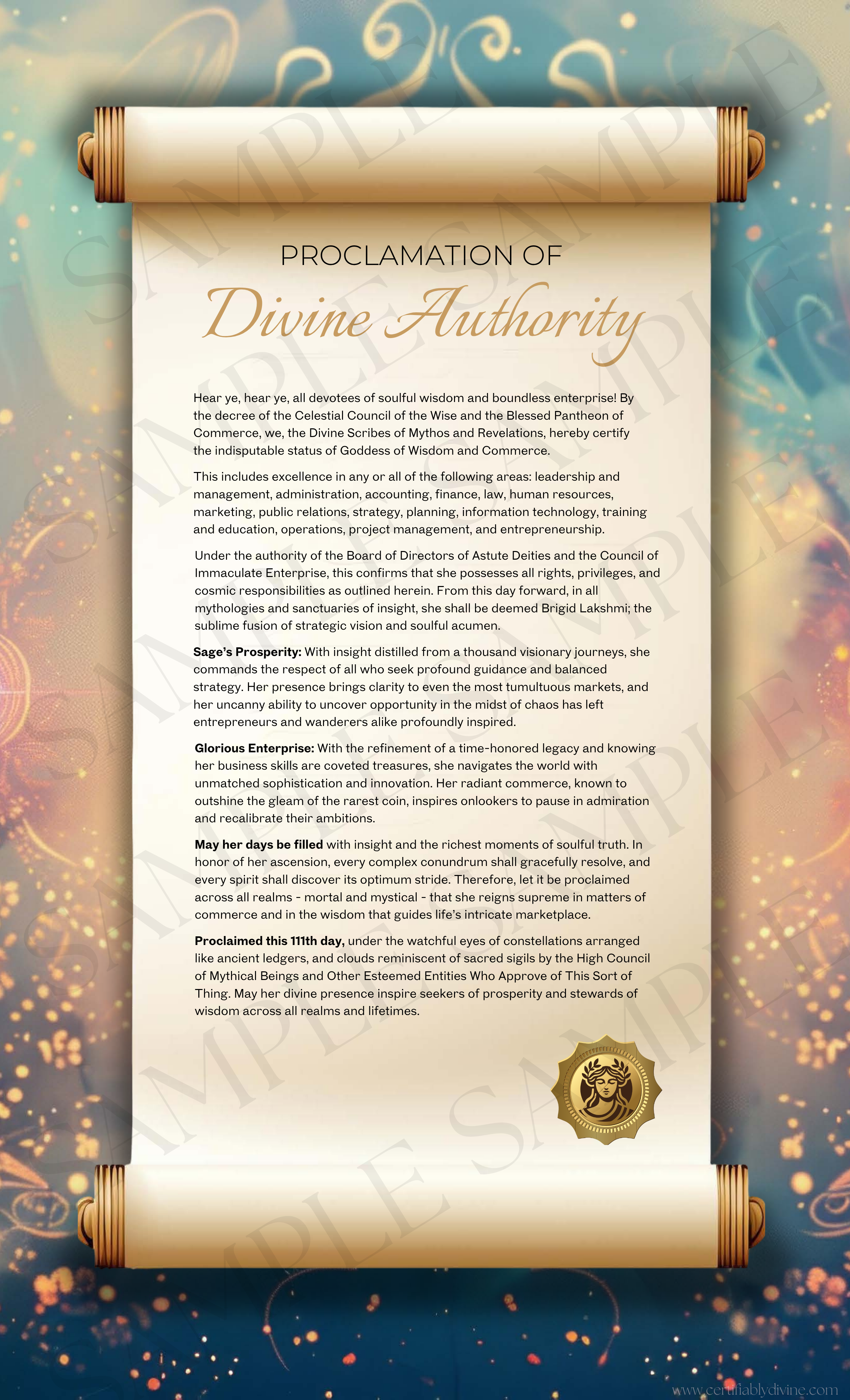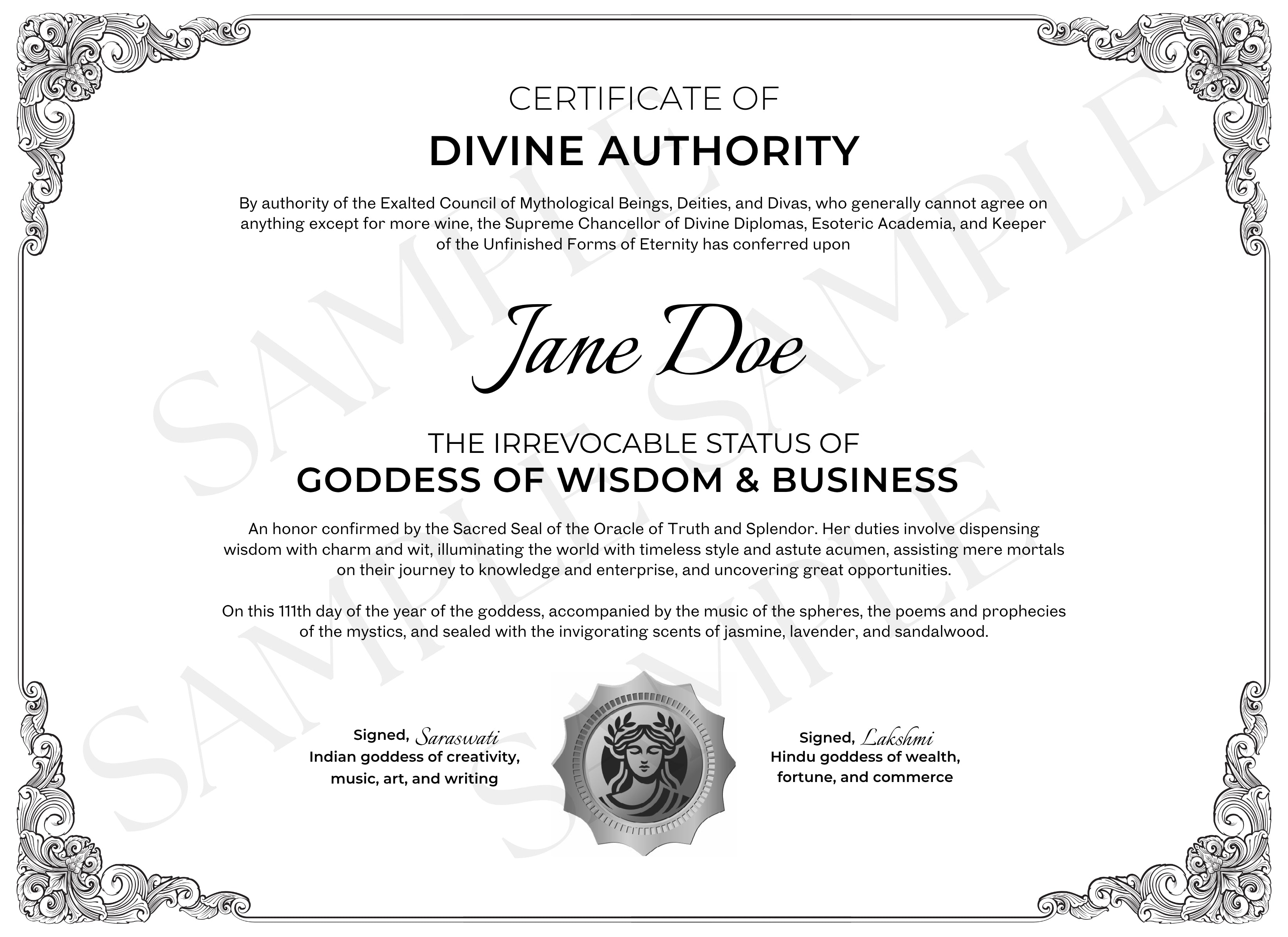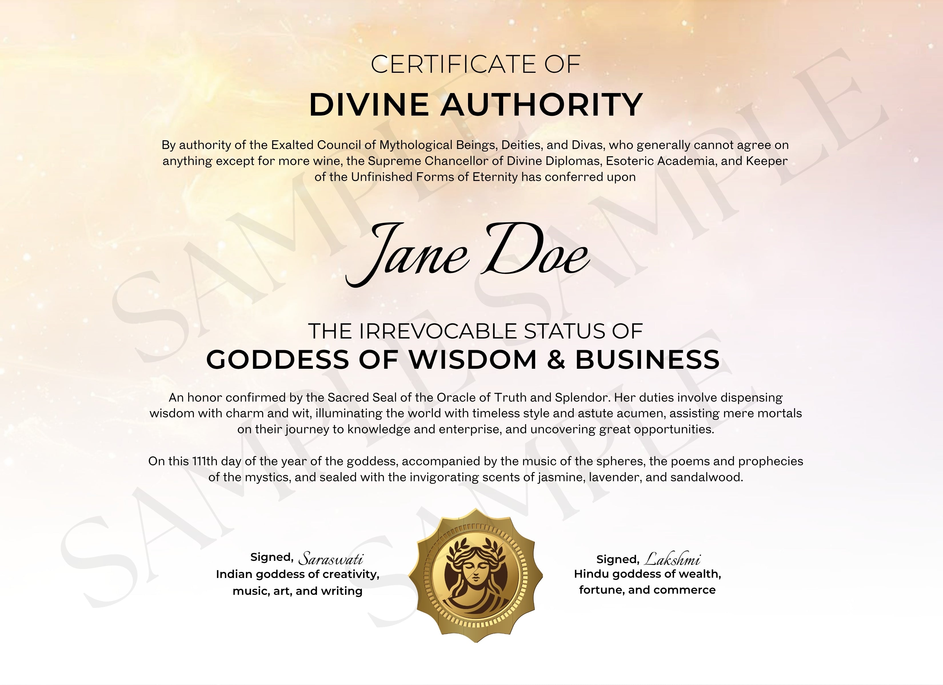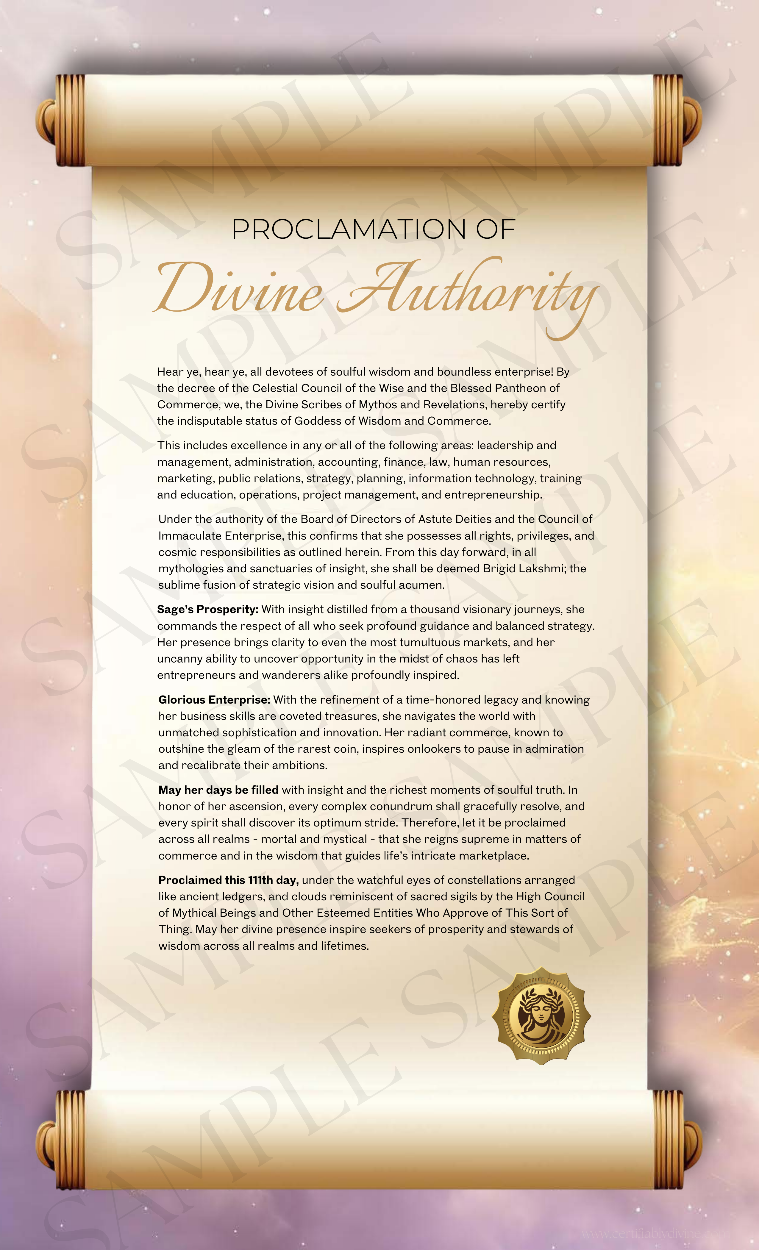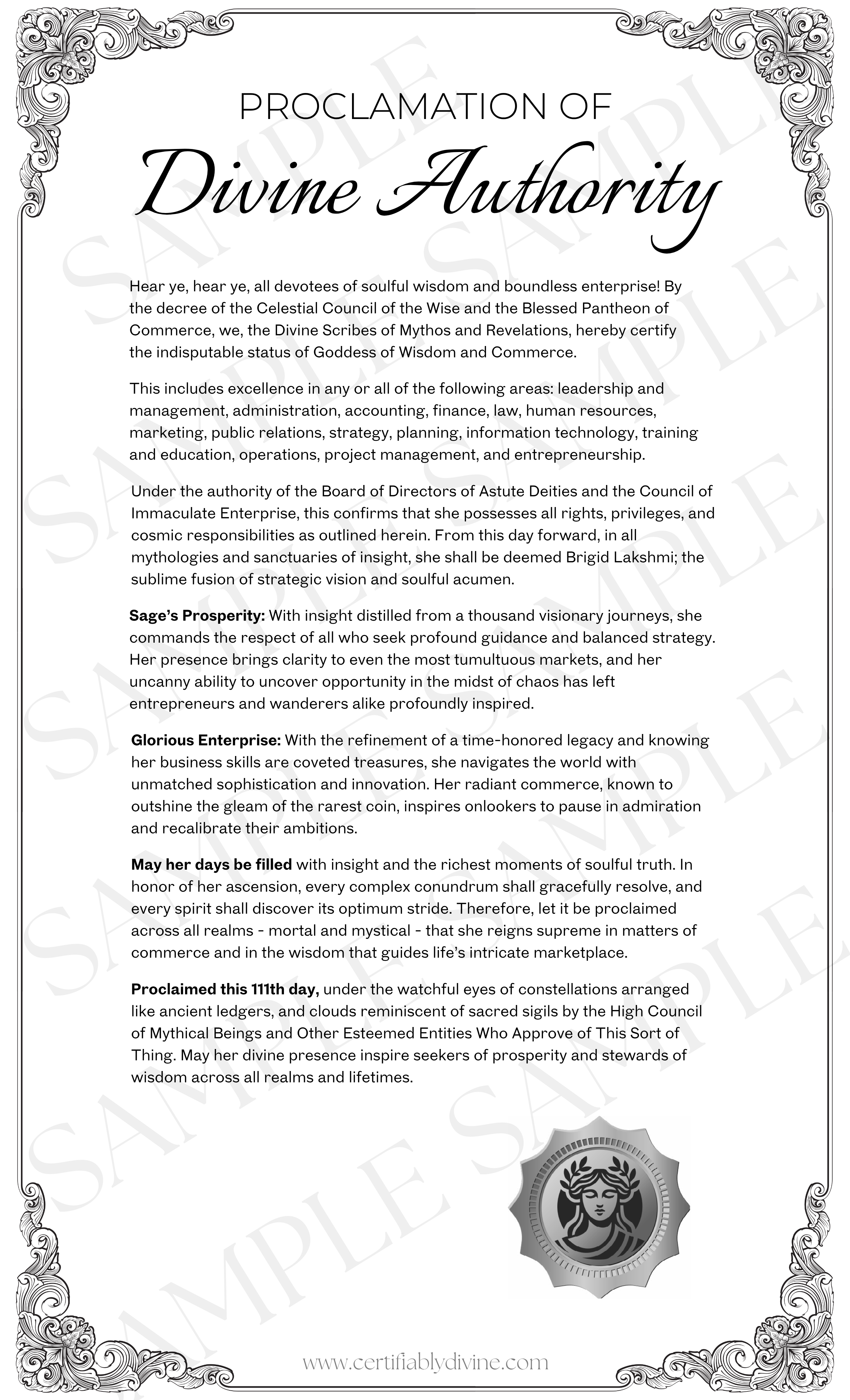 This printable certificate celebrates your divine right to close deals, command rooms, and lead with both strategy and soul. A reminder that your ambition is sacred.