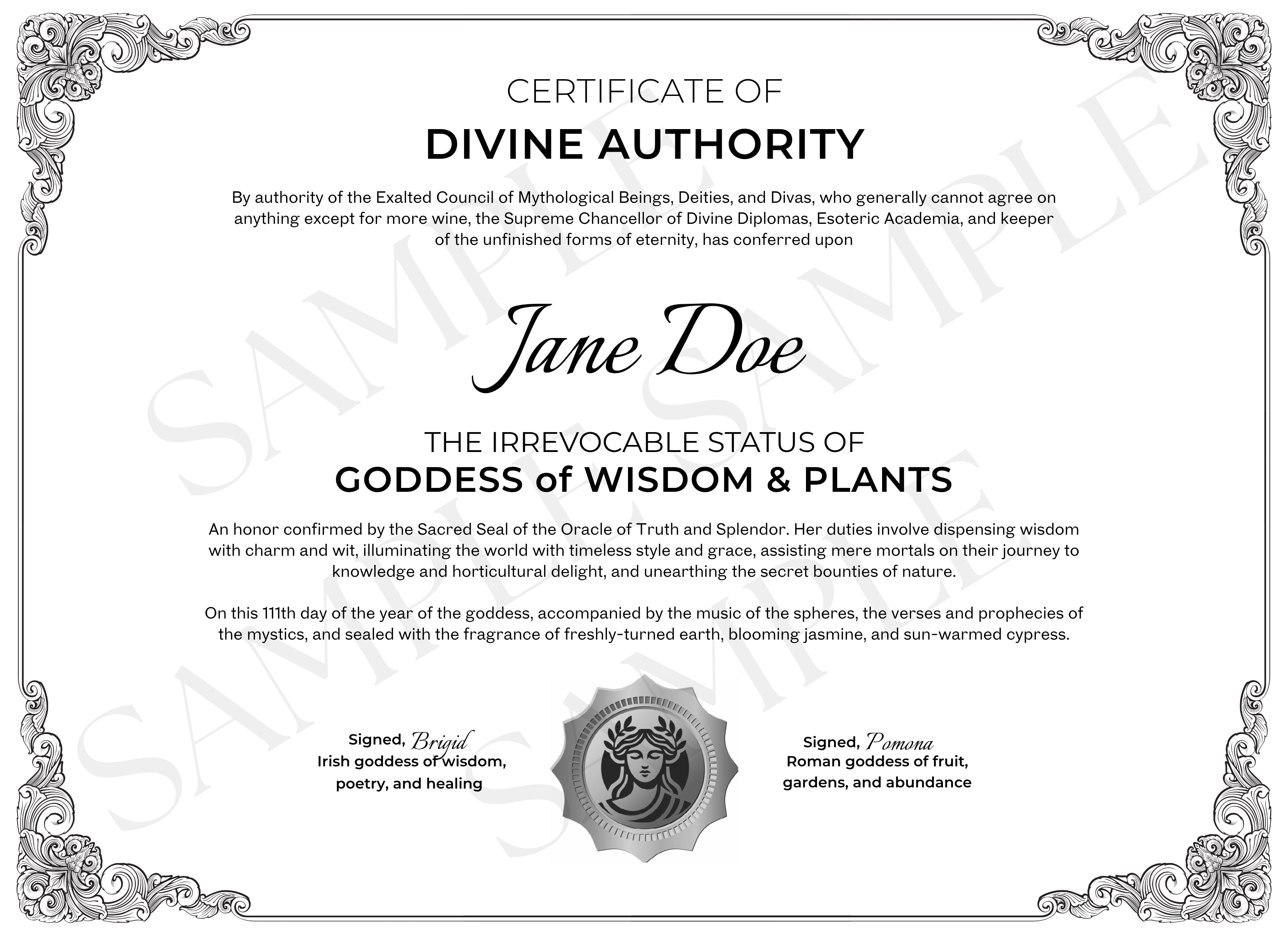 Celebrate your chlorophyll wisdom. This printable certificate honors your sacred connection to all things green and growing—proof that nurturing life is divine work.