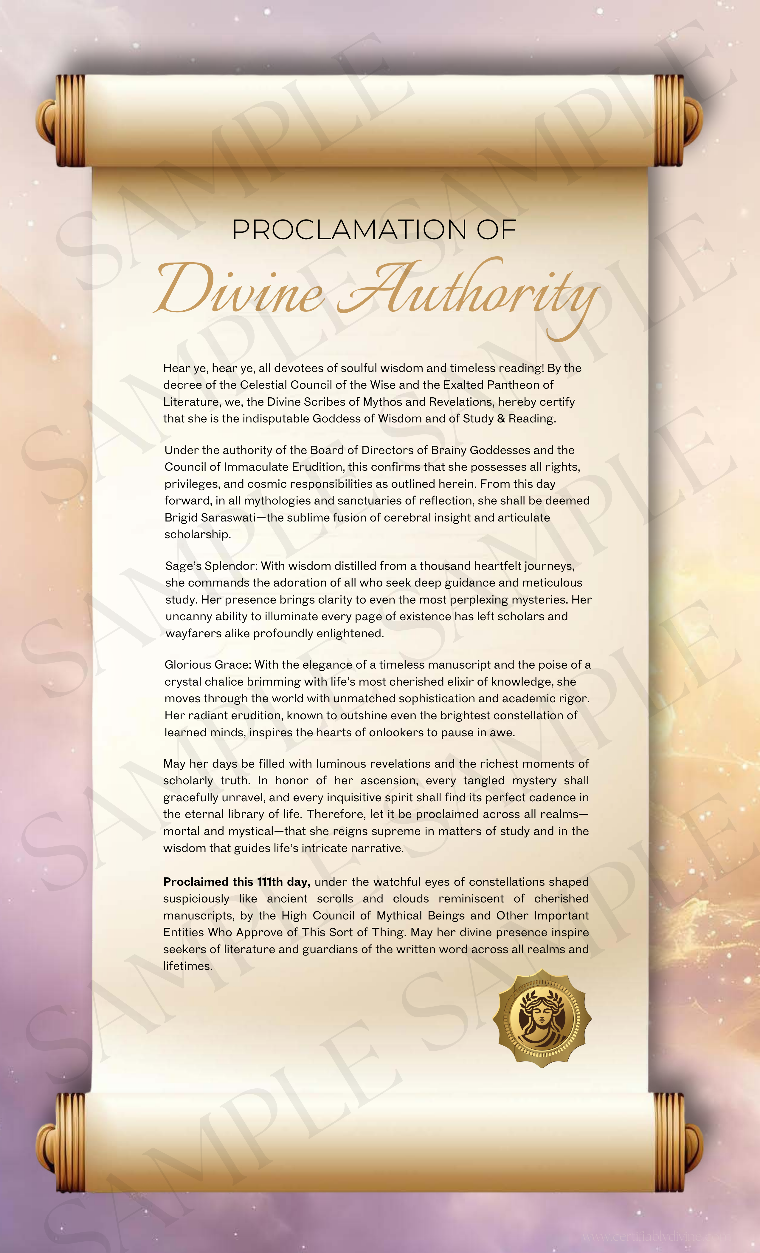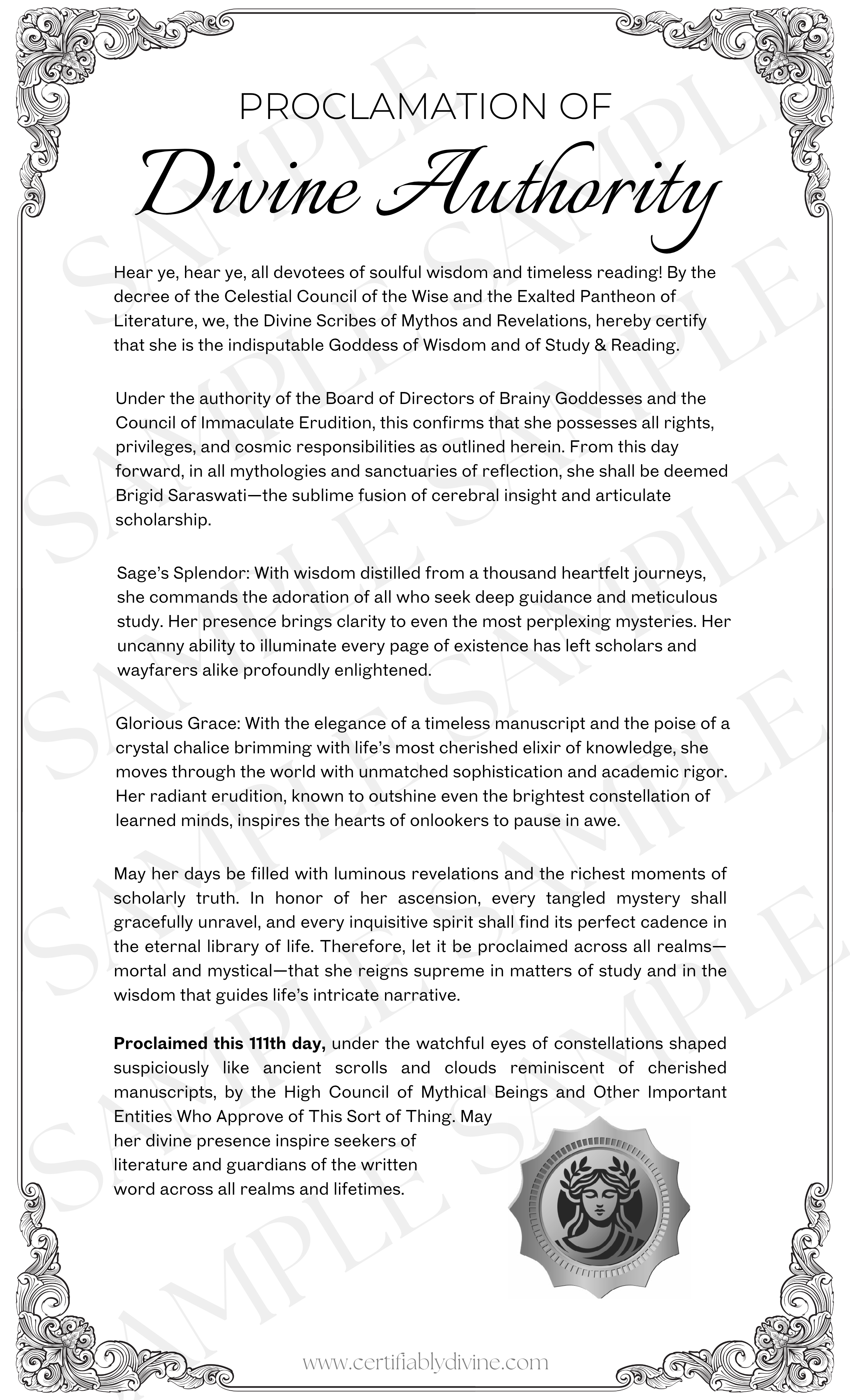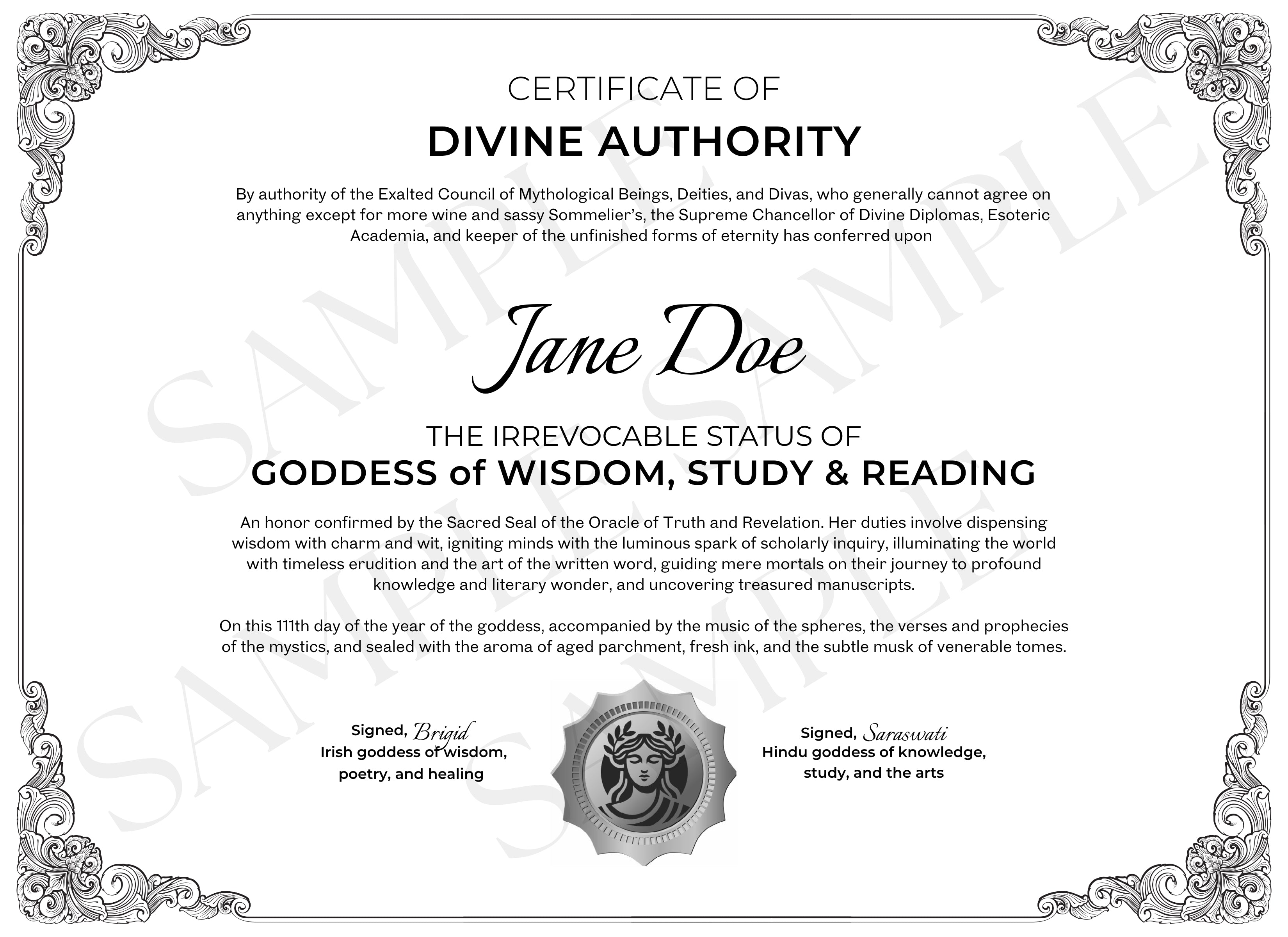 This printable certificate celebrates your literary devotion—the divine art of finding yourself (and losing hours) between the pages of good stories and better wisdom.