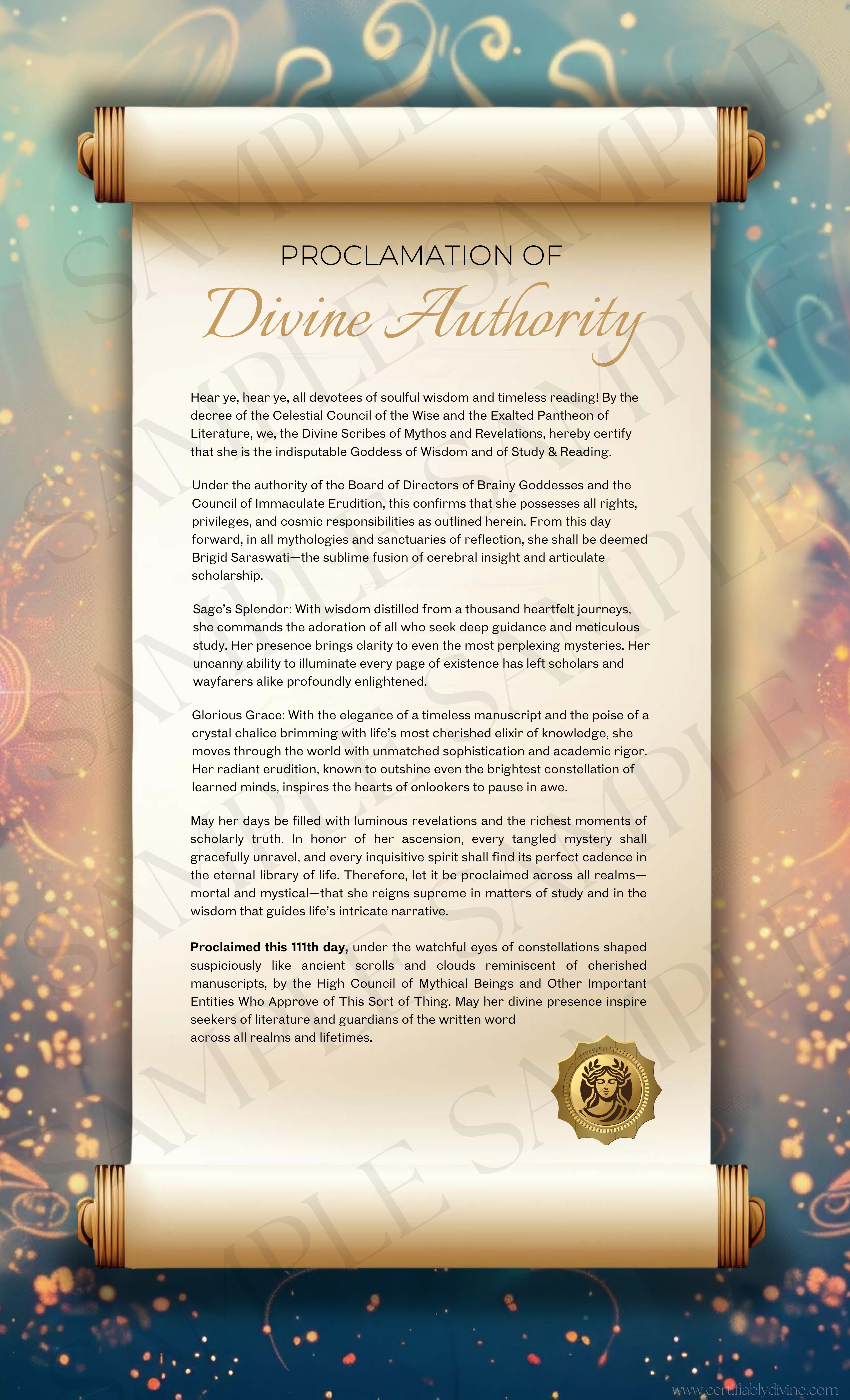 2. Digital Certificate of Divine Authority (with an editable name field) <- A separate email from Templet will be sent to you to customize your order.