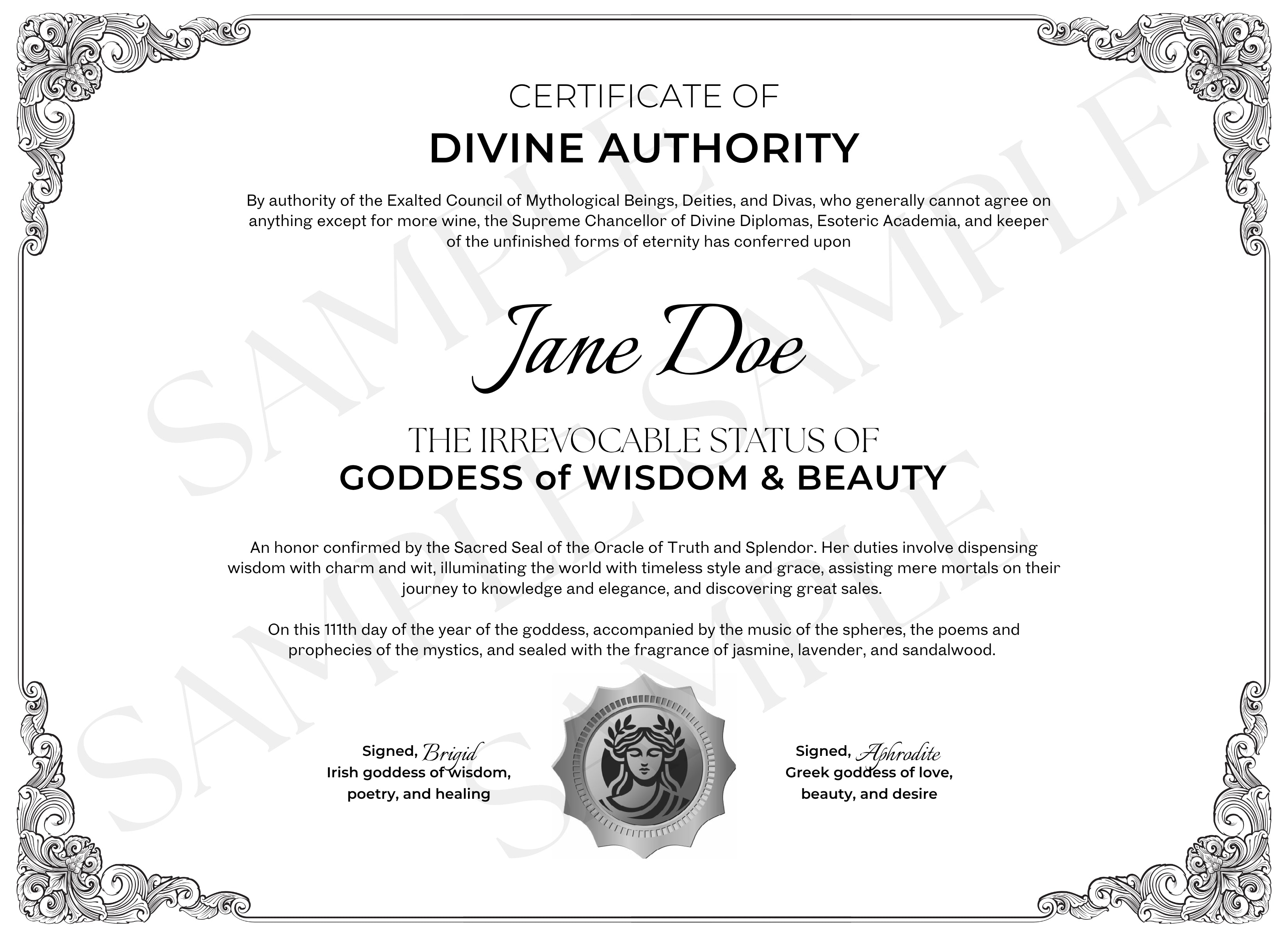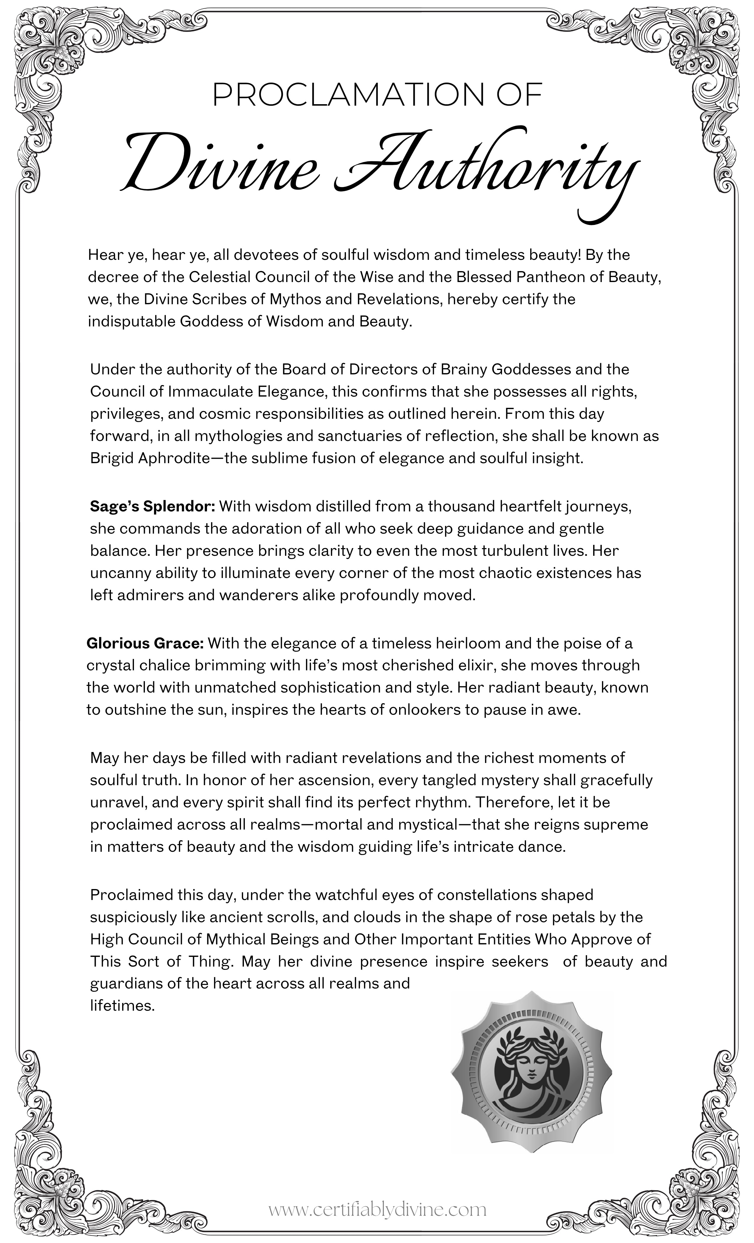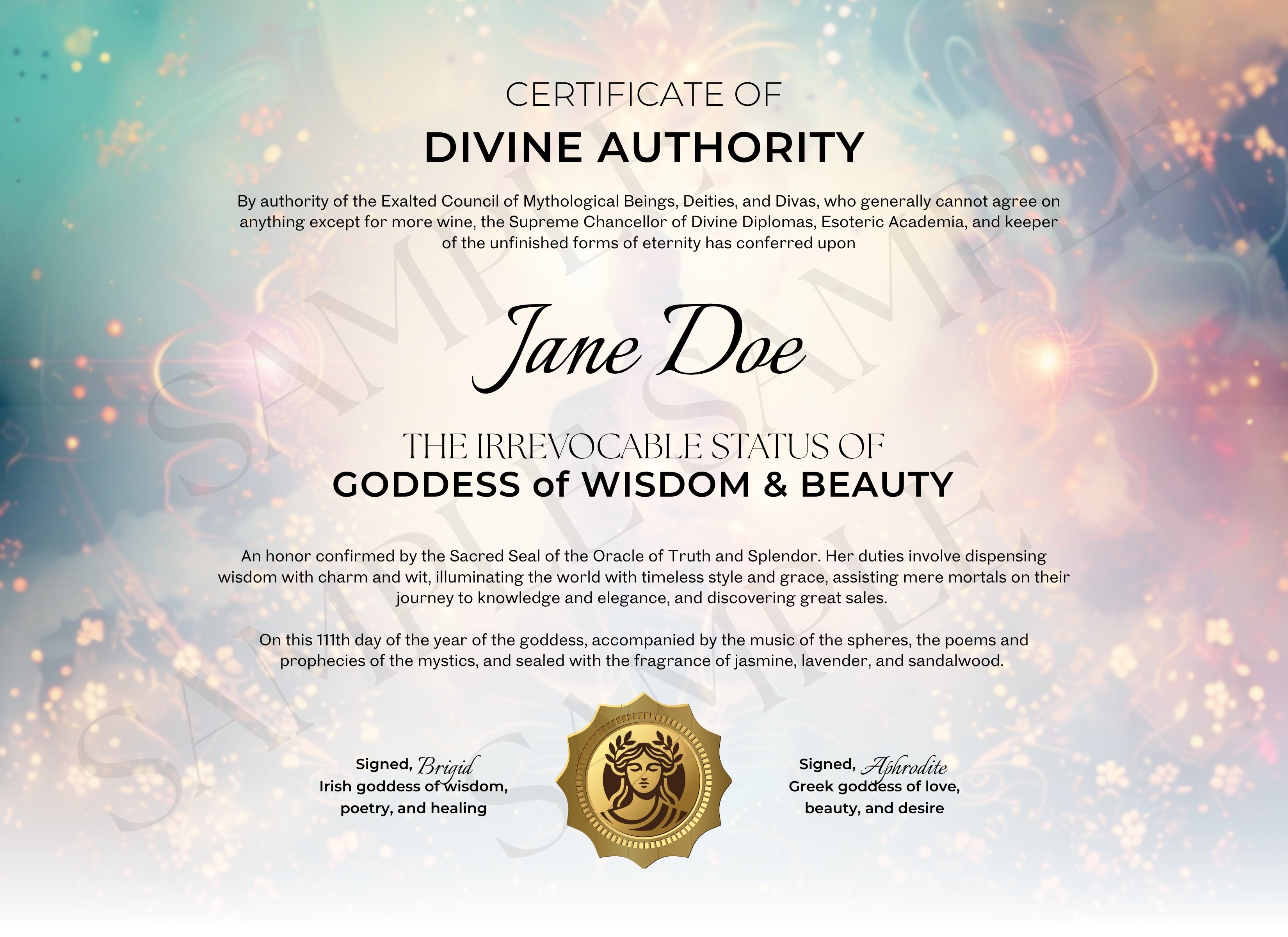 This printable certificate celebrates your power to see and create beauty everywhere - proof that confidence, grace, and laughter are your most radiant accessories.